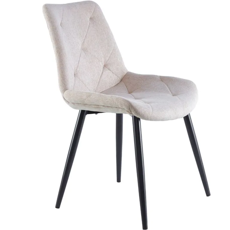Silla de comedor moderna con asiento y respaldo tapizado en tejido Blanco o Gris a escoger, con estructura y patas metálicas negras. Muy cómoda y cálida, a la par que elegante, que combina con todo tipo de estilos. Perfecta para pasar largas sobremesas sentado en ella.