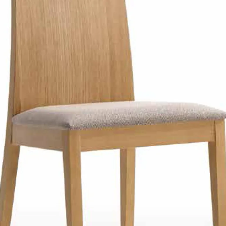 Silla de comedor en acabados en Chapa natural de Roble o haya a escoger (También disponible Lacada ¡Consúltenos en [email protected]!), así cómo diferentes tapizados a escoger entre SERIE A o B. Bastidor fabricadas en madera de Haya maciza, bonita silla que combina con cualquier mesa y perfecta para largas sobremesas y el día a día.