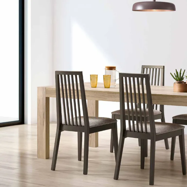 Gracias a sus líneas rectas y bonita estética, hace que esta silla de comedor se adapta de maravilla a todo tipo de comedores. Con un estilo moderno sorprenderá a tus comensales.