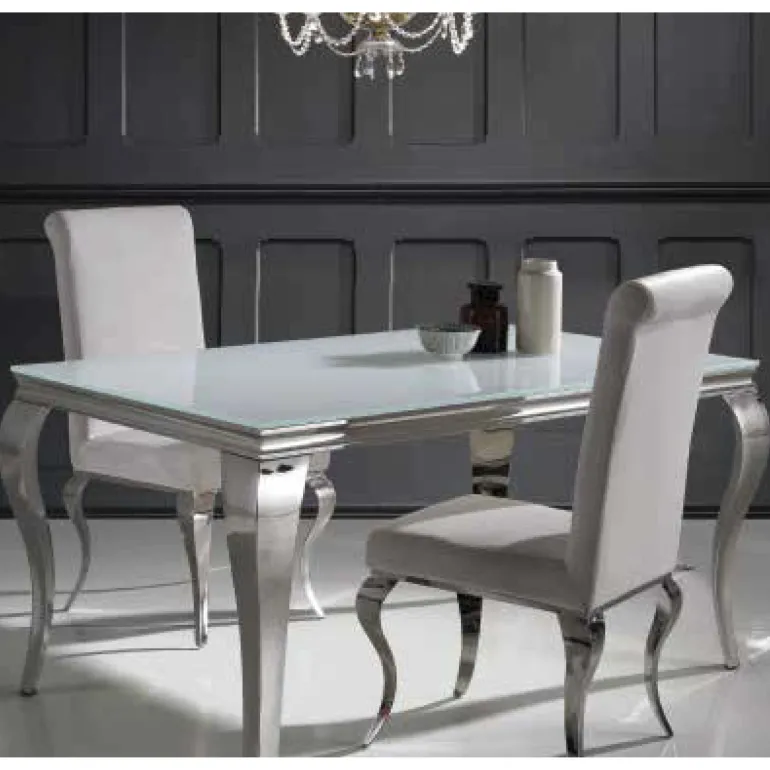 Silla de comedor cromada en tapizado de polipiel Blanca o Gris. De patas estilo Isabelinas.