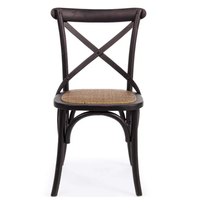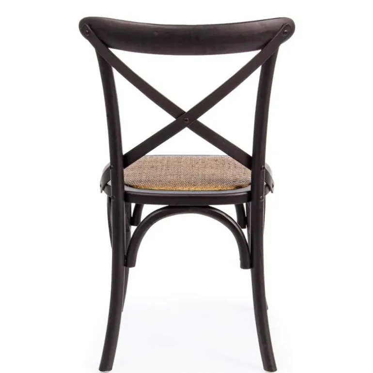 Fabricada en madera de olmo macizo y asiento tapizado con ratán natural. Disponible en varios colores. En este casoennegro vintage