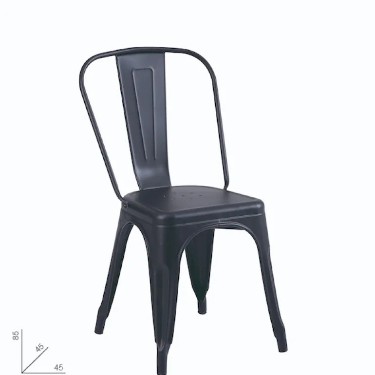 Silla de comedorcon estructura de forjado metálico,disponible encolor negroo blanco a elegir. Un estilo Urbano Industrial, forjado con los remaches visibles, un taburete muy moderno y robusto. Incorporaterminaciónde goma en las patas para evitar ralladuras en parqué.