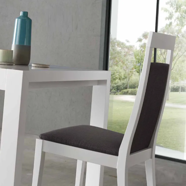 Silla de comedor en acabados Lacados a escoge (También disponible en Chapa de Haya Natural ¡Consúltenos en [email protected]!), así cómo diferentes tapizados a escoger entre SERIE A o B. Fabricadas en madera de Haya maciza en diferentes acabados, bonita que combina con cualquier mesa y perfecta para largas sobremesas y el día a día.