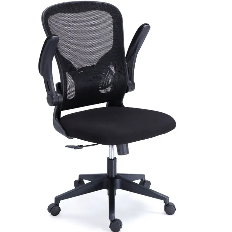 Es regulable en altura y giratoria. Mecanismo basculante con bloqueo. Brazos tapizados escamoteables.