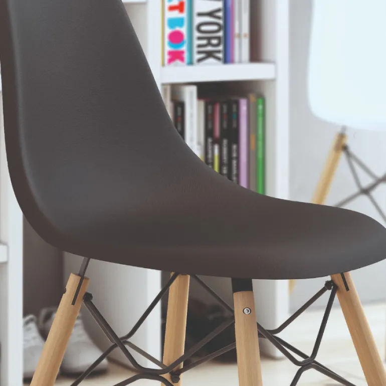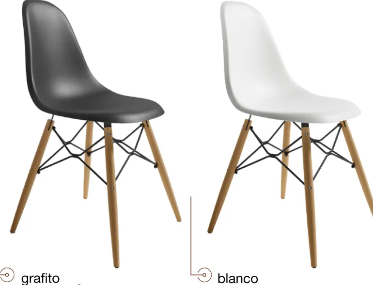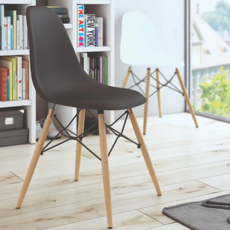 Silladecomedor de polipropileno con patasde madera macizamuy resistente. Con un diseño muy actual, de estilo moderno, pero que encaja en cualquier tipo de decoración a la perfección. Escoge la combinación que encaje mejor con tu estilo, de las posibles combinacionesdiferentes de colores:Blanco o Grafito.