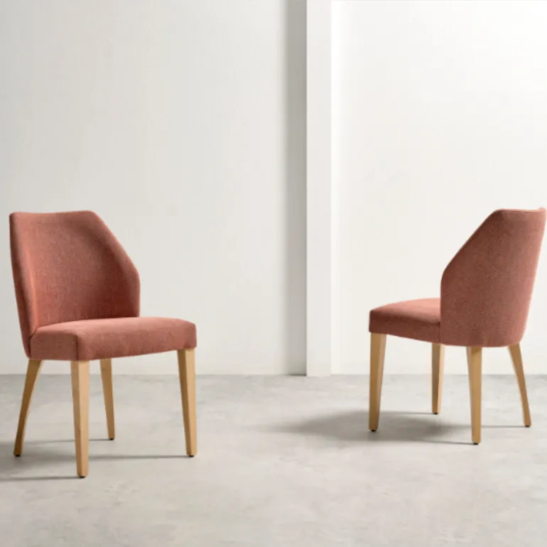Silla Génova de comedor con asiento y respaldo tapizado acolchado que recoge las lumbares, patas de madera de haya maciza muy resistente, en 4 tonos de diferentes a escoger. Y diferentes colores de tapizado a escoger.