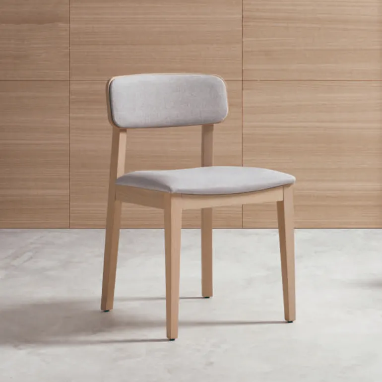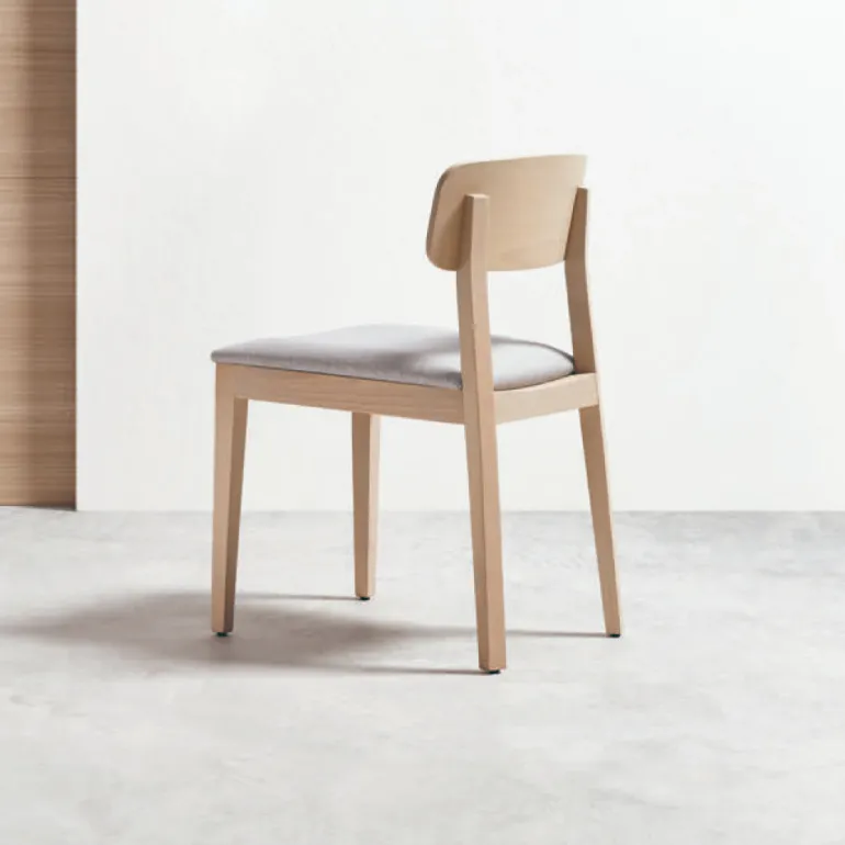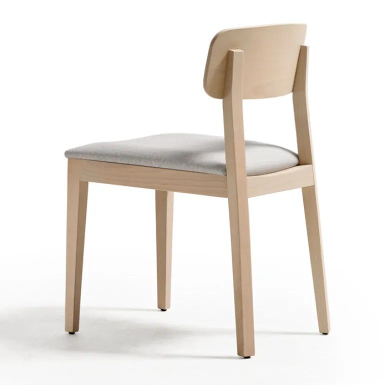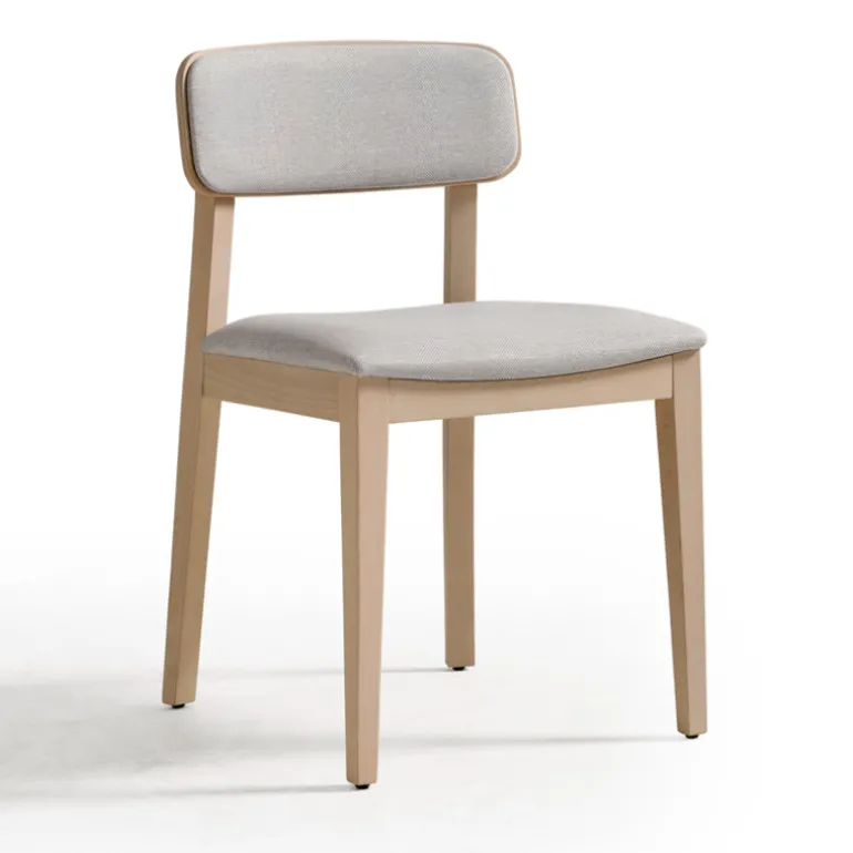Silla Ginosa de comedor con asiento y respaldo tapizado acolchado, patas de madera de haya maciza muy resistente, en 4 tonos de diferentes de maderas a escoger. Y diferentes colores de tapizado a escoger.
