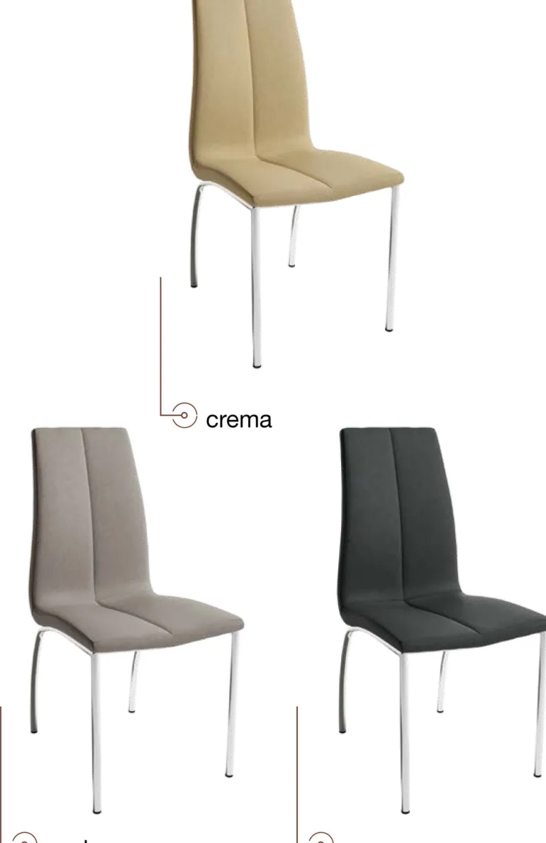 silla Grant cromada de comedor con asiento y respaldo tapizado, patas metálicas cromadas muy resistente. Con un diseño muy actual, de estilo moderno, pero que encaja en cualquier tipo de decoración a la perfección. Escoge la combinación que encaje mejor con tu estilo, de las posibles combinacionesdiferentes de colores: Crema, Perla y Marengo.
