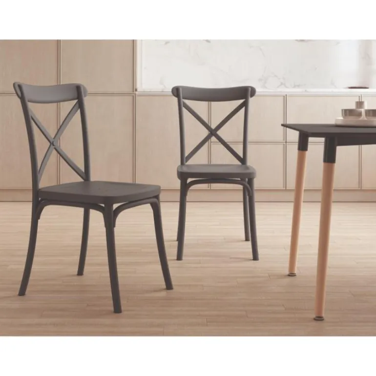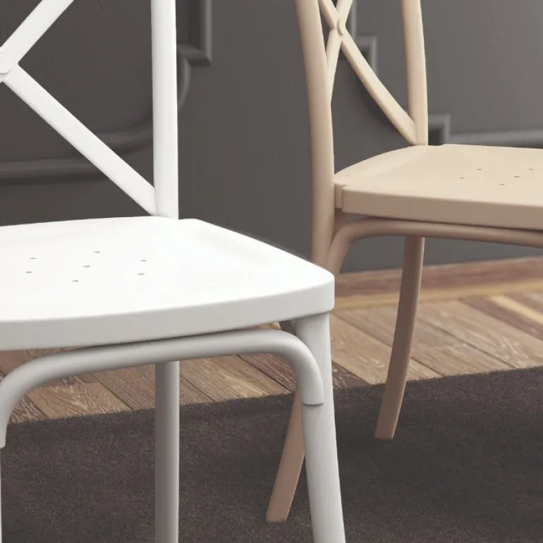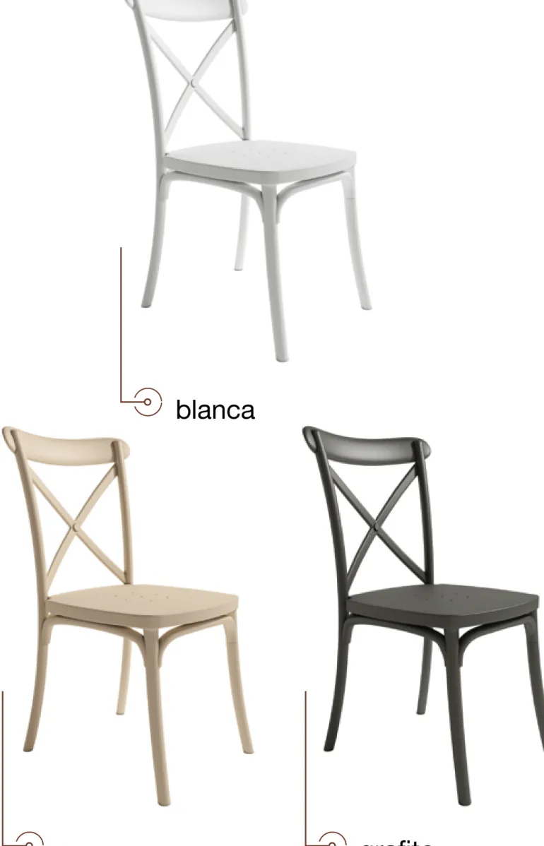 silla hall de comedor o terraza apilable de polipropileno, muy resistente apta para interior o exterior. Con un diseño muy actual, de estilo moderno, pero que encaja en cualquier tipo de decoración a la perfección. Escoge la combinación que encaje mejor con tu estilo, de las posibles combinacionesdiferentes de colores:Arena, Blanca o Grafito.
