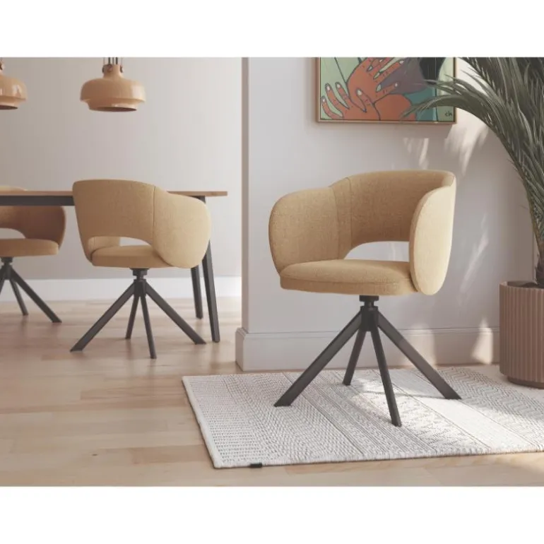 Butaca Lee tapizada, patas metálicas negras giratorias 360º muy resistentes. Con un diseño muy actual, de estilo moderno, pero que encaja en cualquier tipo de decoración a la perfección. Escoge la combinación que encaje mejor con tu estilo, de las posibles combinaciones diferentes de colores: Marrón, Mostaza, Verde, Gris.