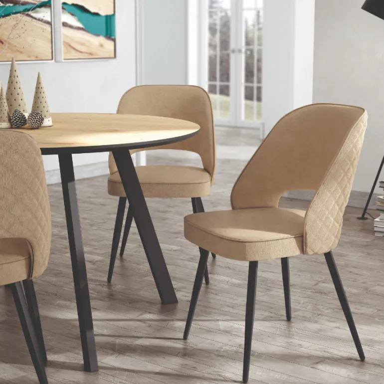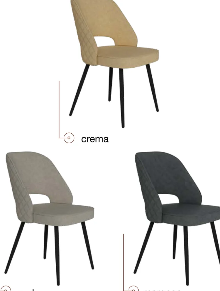 Silladecomedor con asiento y respaldo tapizado, patas metálicas negras muy resistente. Con un diseño muy actual, de estilo moderno, pero que encaja en cualquier tipo de decoración a la perfección. Escoge la combinación que encaje mejor con tu estilo, de las posibles combinacionesdiferentes de colores: Crema, Perla y Marengo.