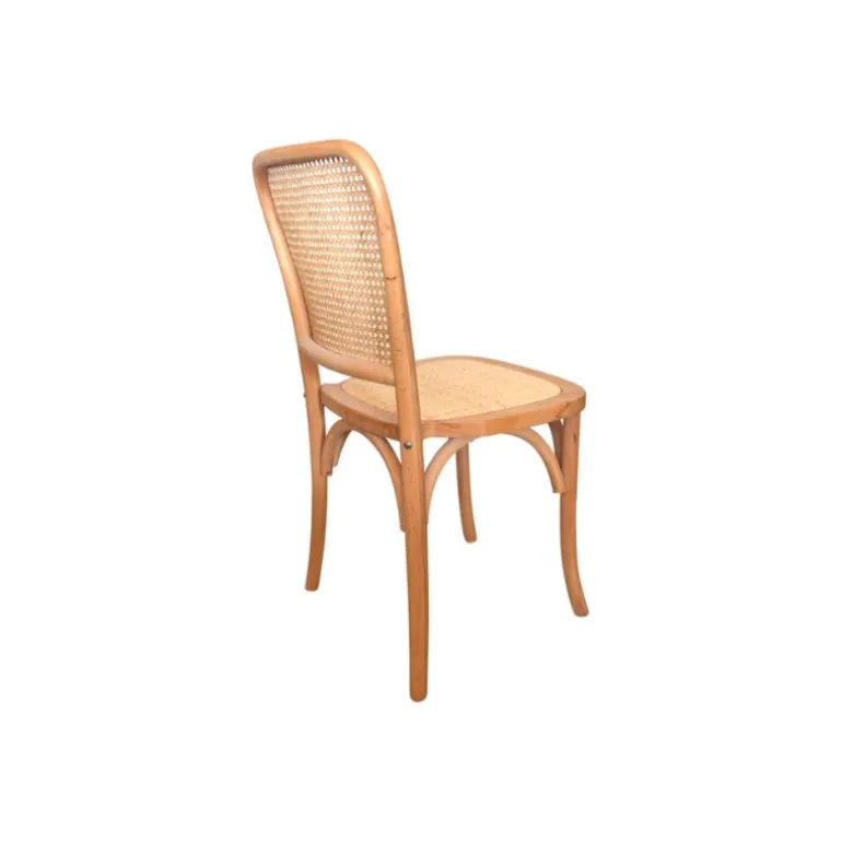 Silla de comedor con estructura en madera madera maciza color natural. Asiento y respaldo de rattán natural. Muy cómoda y resistente, a la par que elegante, que combina con todo tipo de estilos. Perfecta para pasar largas sobremesas sentado en ella. Apilable.