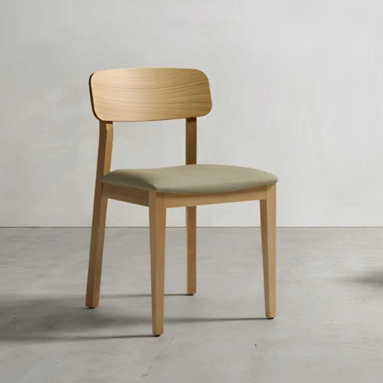 Silla lucca de comedor con asiento tapizado acolchado, patas de madera de haya maciza muy resistente, en 4 tonos de diferentes de maderas a escoger. Y diferentes colores de tapizado a escoger.