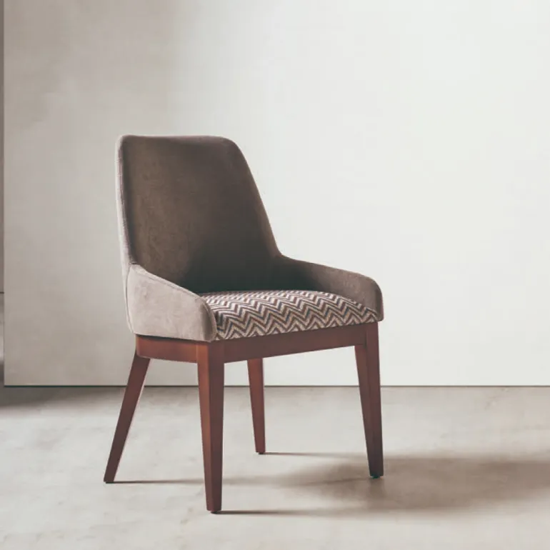 Silla Pavía de comedor con asiento, reposabrazos y respaldo tapizado acolchado, patas de madera de haya maciza muy resistente, en 4 tonos de diferentes de maderas a escoger. Y diferentes colores de tapizado a escoger.