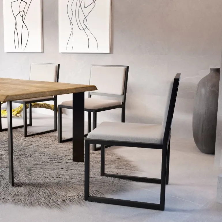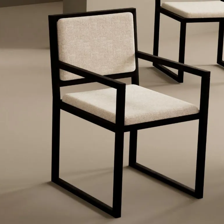 silla tapizada Hill, silla de comedor tapizada, patas metálicas negras muy resistente. En dos modelos: Silla y Sillón con reposabrazos. Con un diseño muy actual, de estilo contemporáneo, pero que encaja en cualquier tipo de decoración a la perfección. Escoge el tapizado que encaje mejor con tu estilo, de las posibles combinaciones diferentes de colores de Serie-A y Serie-B de tapizados. Disponible la mesa de comedor de la fotografía en sta web.