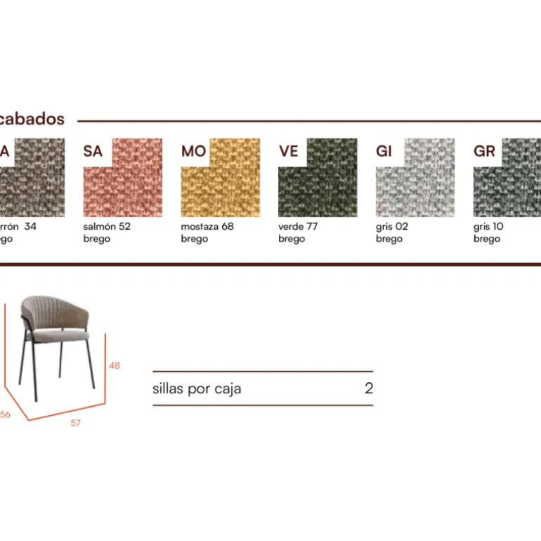 | Color |   Gris, Gris claro, Marrón, Mostaza, Salmón, Verde  |