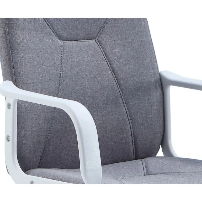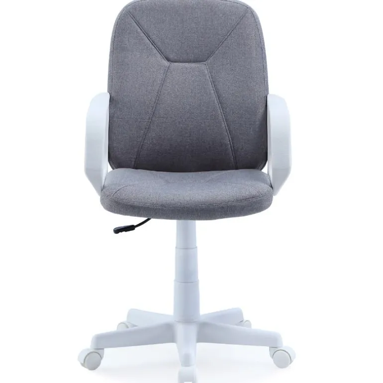 Silla para despacho muy cómoda, con ruedas blancas aptas para el parqué y sistema giratorio, así como regulable en altura con mecanismo basculante con bloqueo.