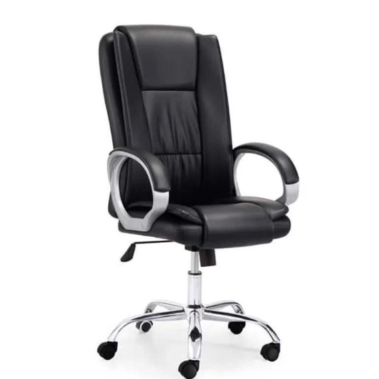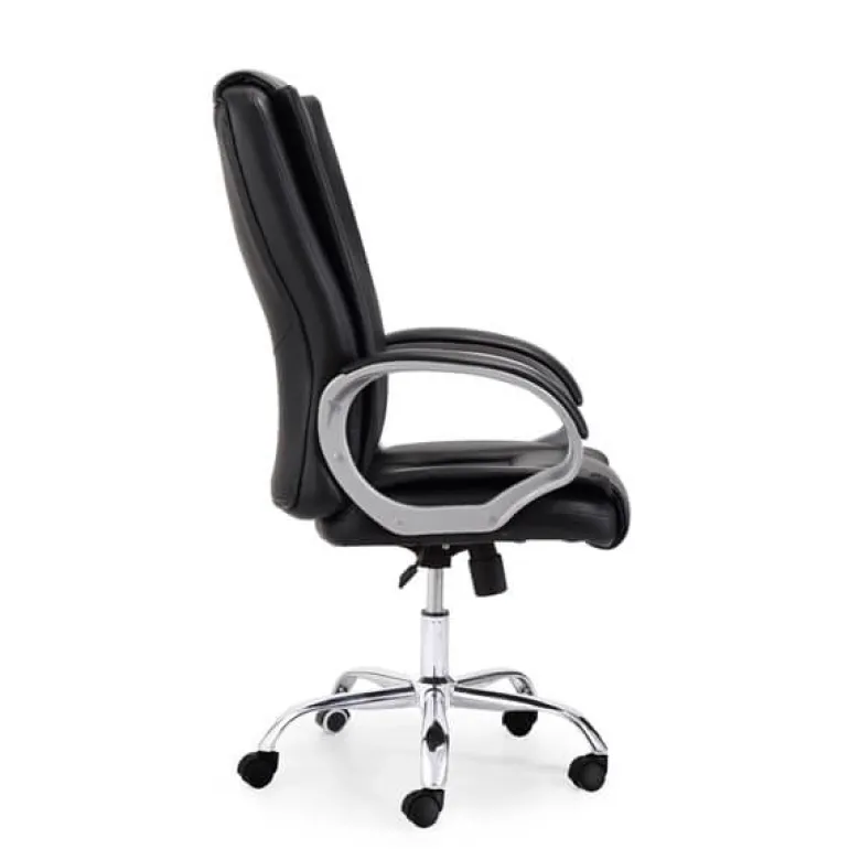 Sillón para despacho negro muy cómodo, ruedas aptas para parquéy giratorio así como regulable en altura con mecanismo basculante, tapizado en piel incluidos los respaldos. La elegancia hecha práctica, ademásde serergonómico y muy cómodo.