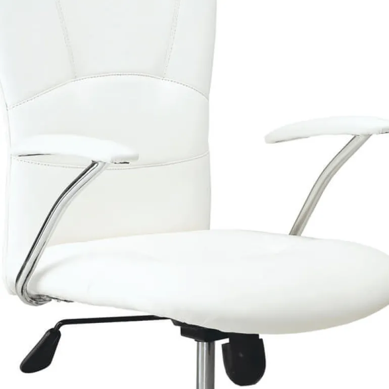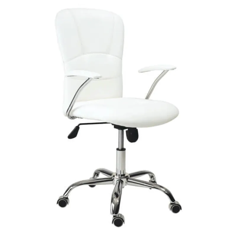 Tapizado en un elegante simil piel blanco,derespaldo ergonómicoaltoy estructura cromada extrabrillo, con reposabrazos cromados y tapizados. La elegancia hecha práctica, ademásde serergonómico y muy cómodo.