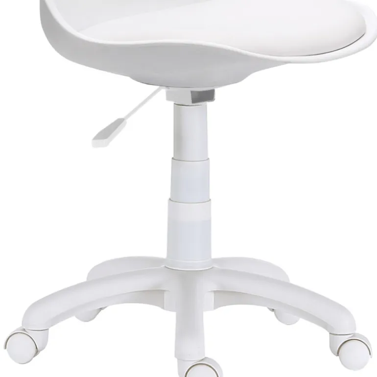 Conseguirás una decoración con mucho estilo con esta silla con mecanismo giratorio y elevable. Con patas Blancas y ruedas aptas para parqué.