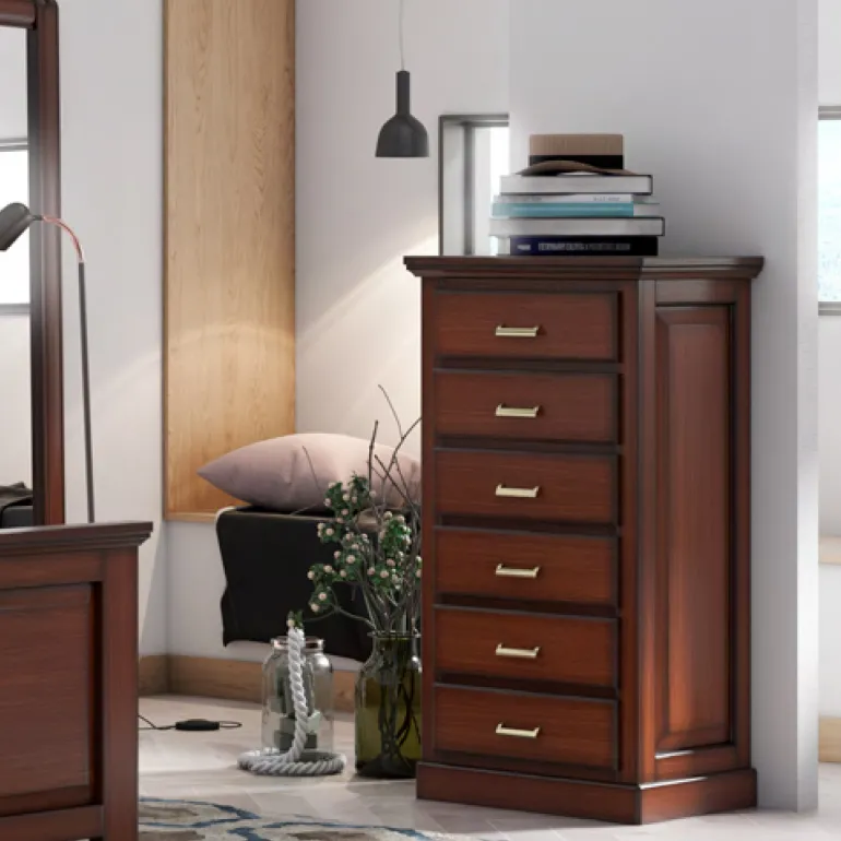 Sinfonier de 6 cajones para dormitorio de matrimonio, en chapa de Roble natural N3-S, que le otorga un contraste muy elegante,moderno y ligero.