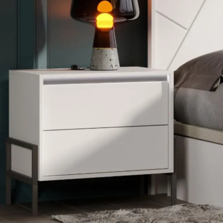 Disponible dormitorio completo a juego, acabado Lacado y en chapa natural de roble con nudos, que le otorga un contraste muy elegante, moderno y ligero.