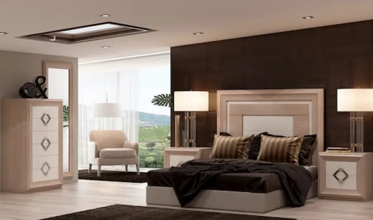 Disponible en la web ésta composición completa de dormitorio de matrimonio para conseguir un dormitorio uniforme y elegante.