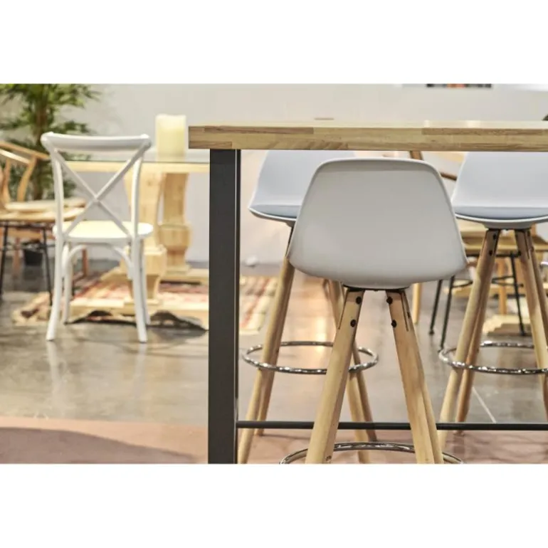 Tenemos disponibles en la web mesas altas ideales para este taburete.