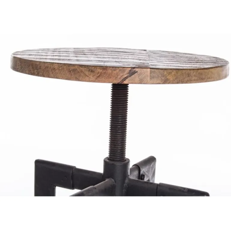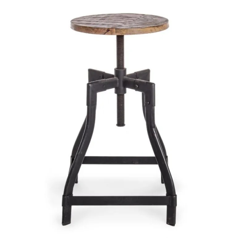 Estructura de hierro y asiento de madera de mando giratorio a altura regulable. peso máximo: 100kg