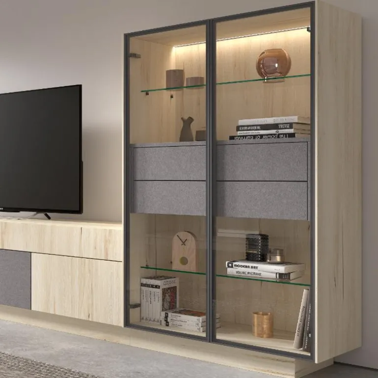 Vitrina Cotton dispone de sistema de absorción en puertas, para evitar golpes indeseados.