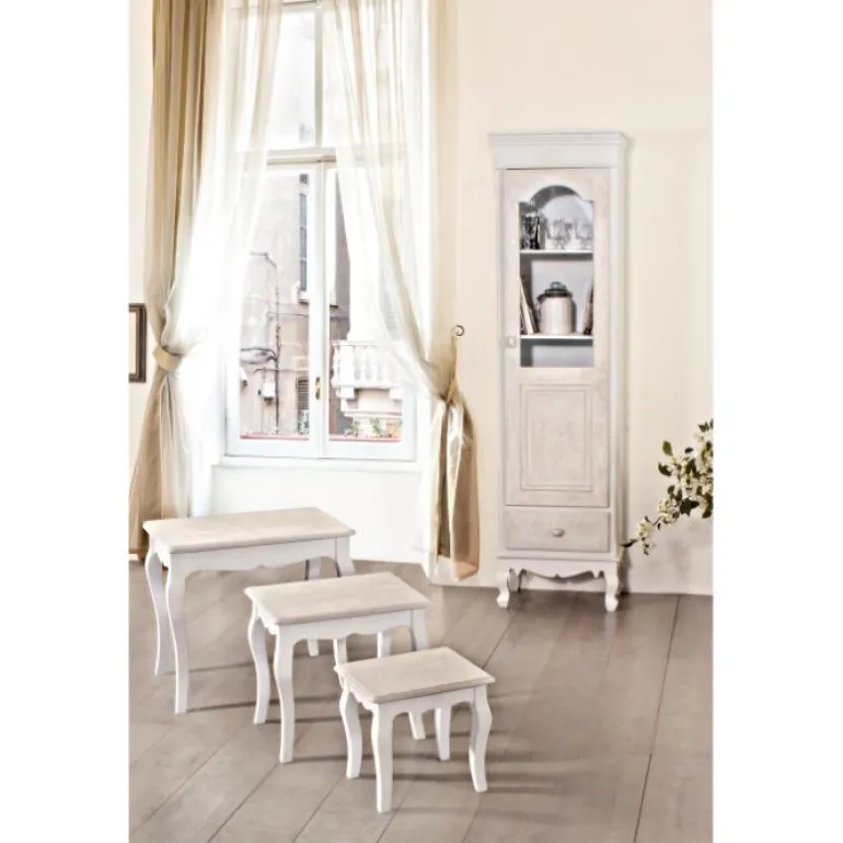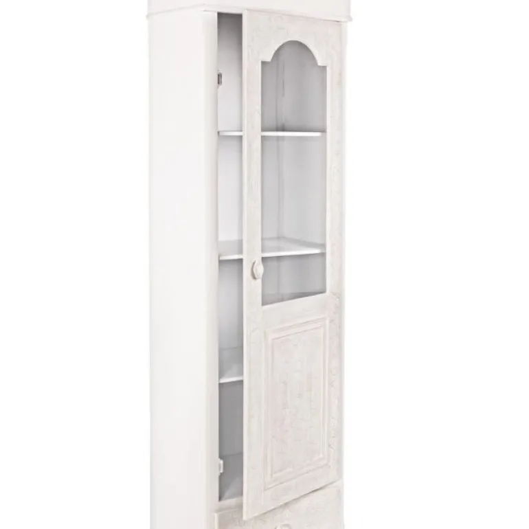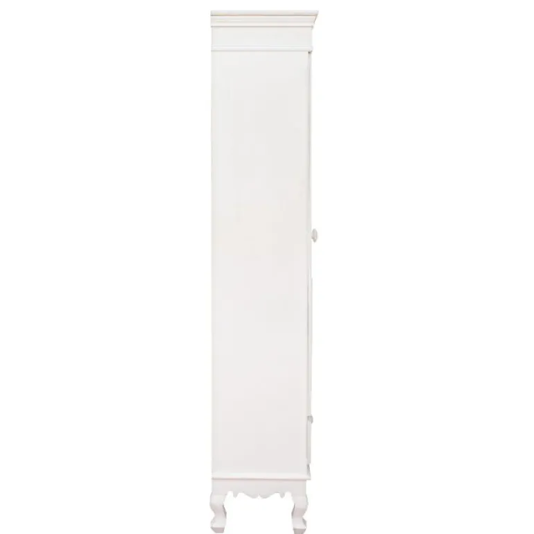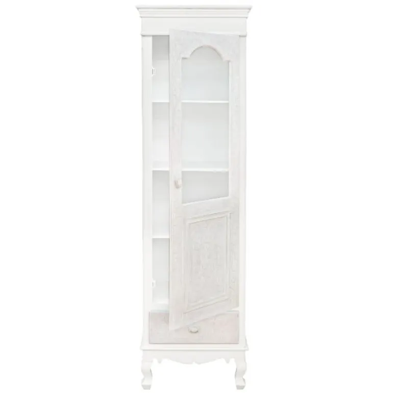 Librería clásica de madera, acabado blanco y patinado para resaltar todas sus molduras y formas. Con3 baldas para colocar tantos libros como quieras y un cajón en la parte inferior.
