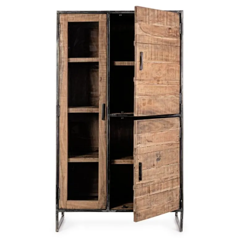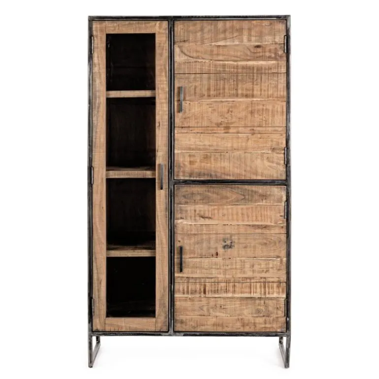 Preciosa vitrina vertical con puerta de cristal que da un toque rústico y vintage a tu hogar. Tiene tres pequeñas repisas y 2 puertas de madera con baldas interiores. Con gran espacio de almacenaje.
