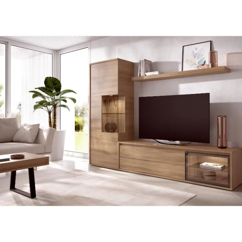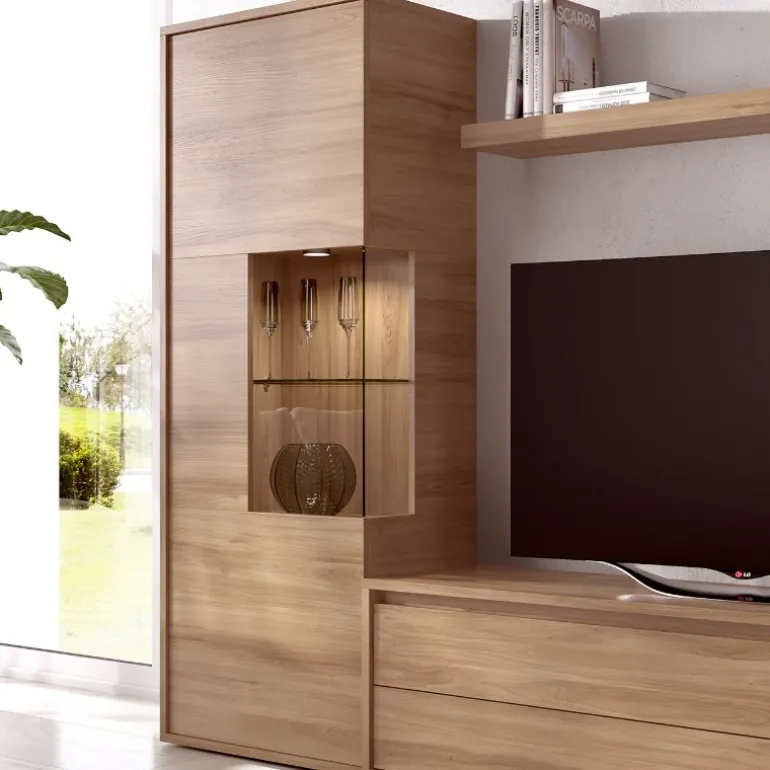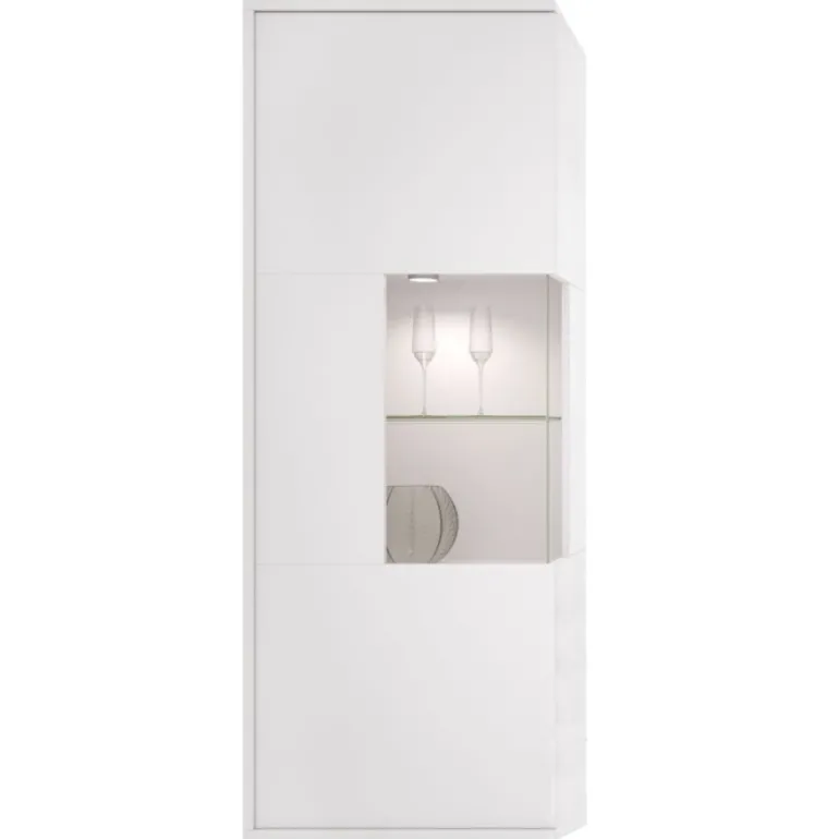 Preciosa vitrina vertical con puerta con cristala ala quese le puede incluir iluminación LED. Va apoyada enpatas regulables que permiten que la vitrina, visualmente, este casi a ras de suelo. Fácil de personalizar gracias a los acabados que se pueden seleccionar tanto para estructura como para frentes.