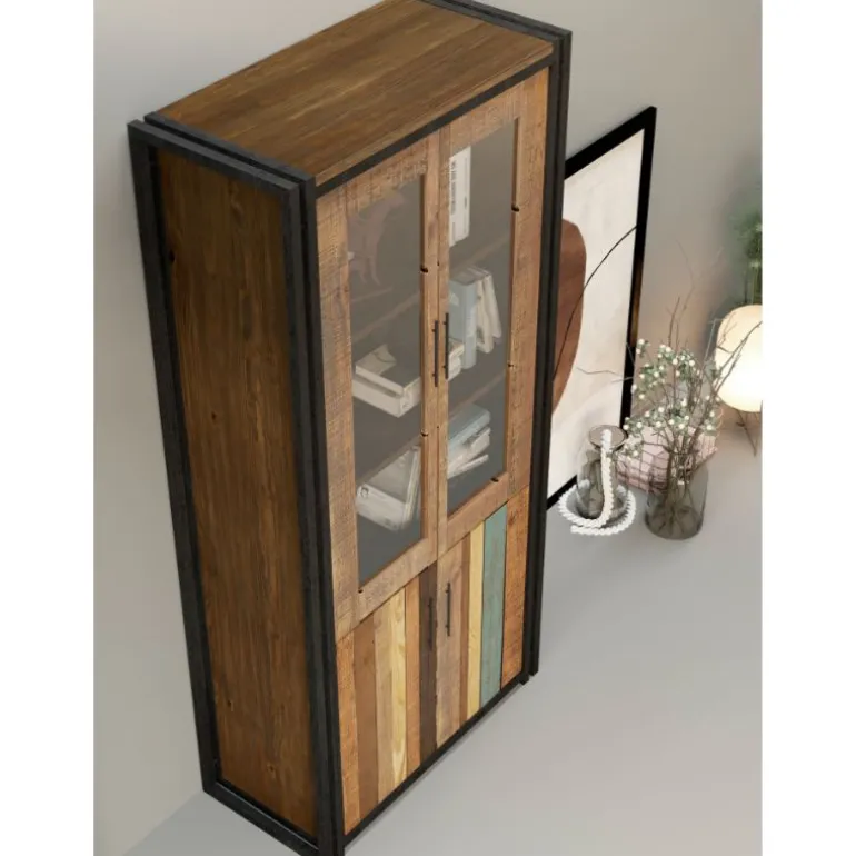 Vitrina Suburban, ideal para el salón de madera maciza tratada, y salones de diseño, con estructura forjado protegido con pintura epoxy negro, lo que le proporciona una larga durabilidad a los años. No dejará indiferente a tus visitas.