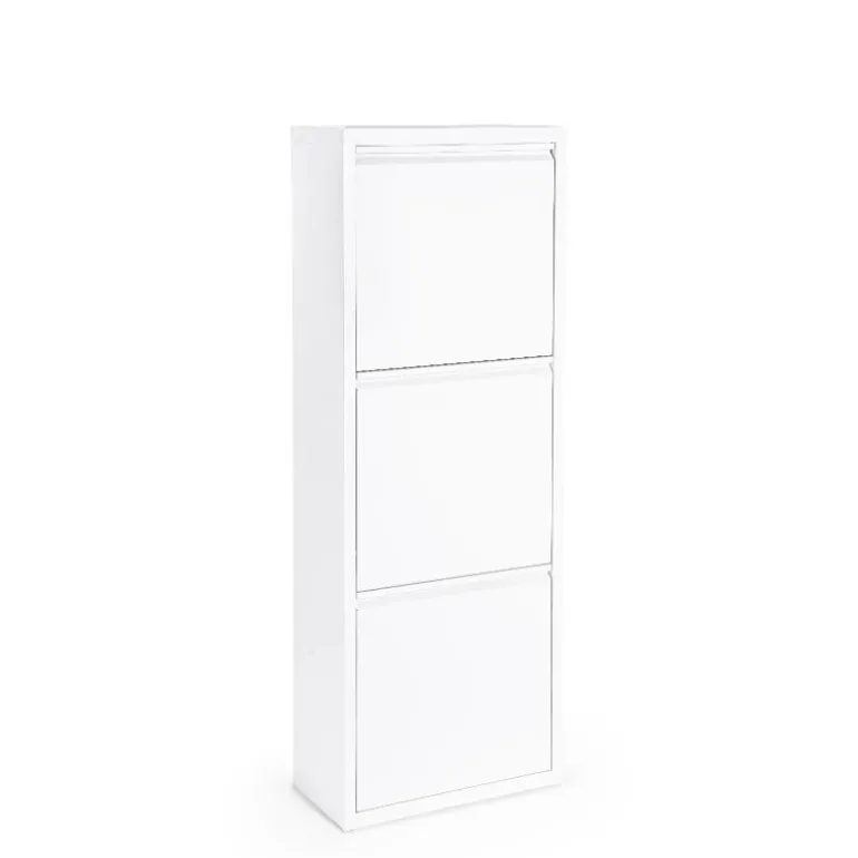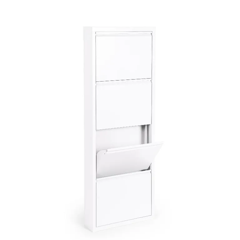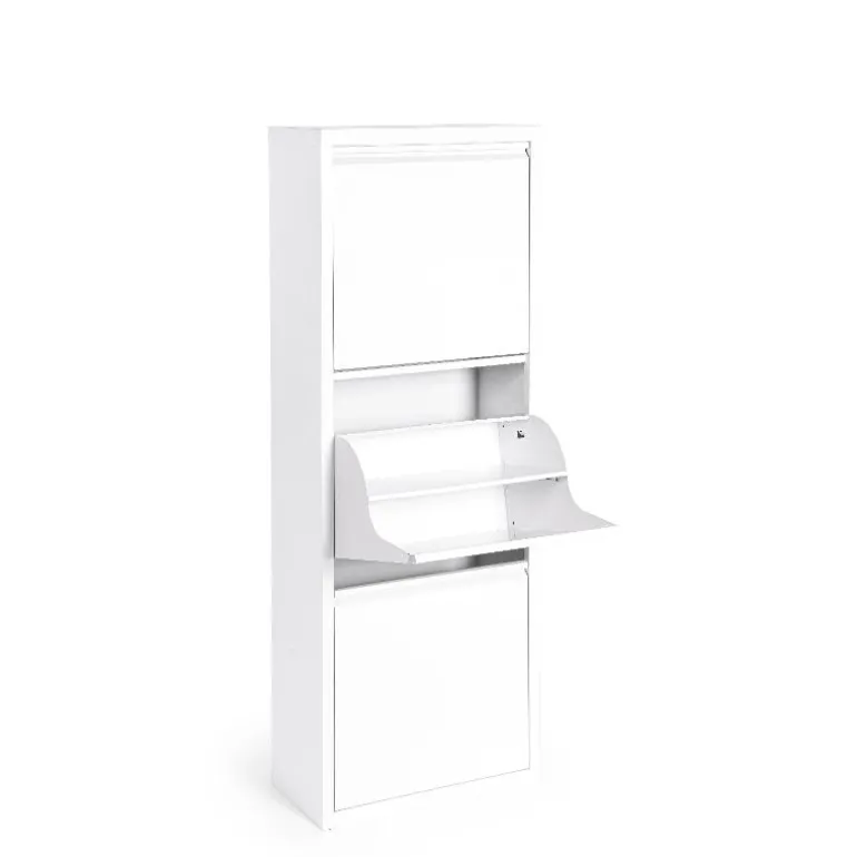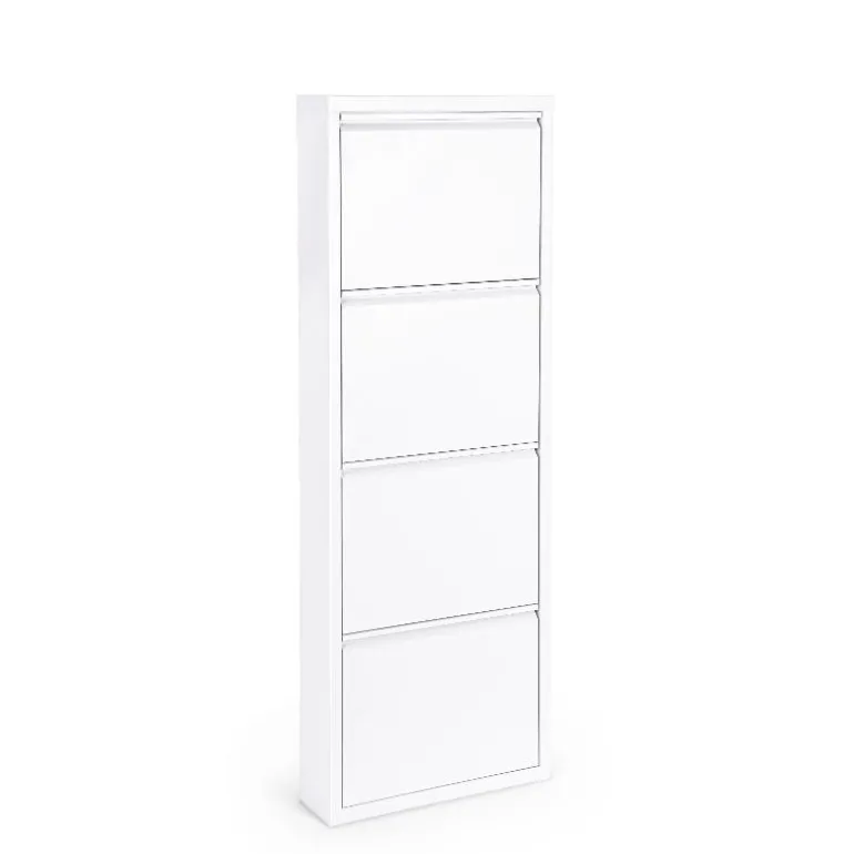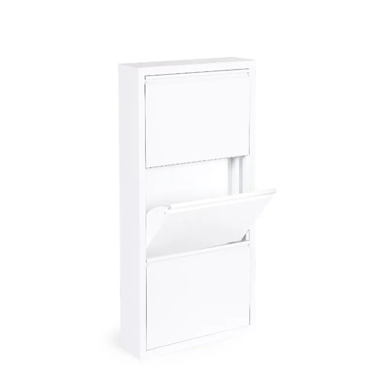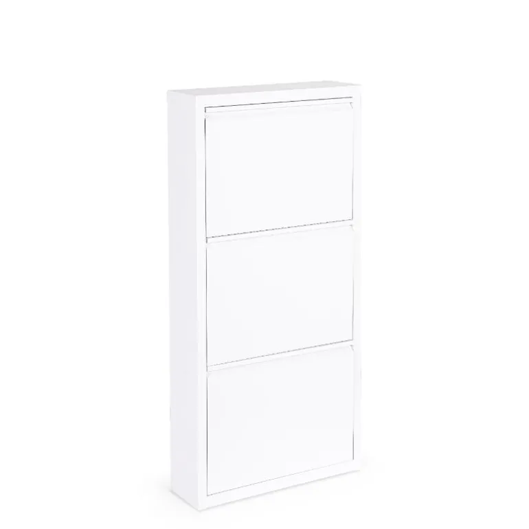 Zapatero blanco para almacenaje de 8 a 12 pares de zapatos, fabricado en acero (0,5 mm) barnizado a polvo epoxi, para que soporte el paso del tiempo cómo nuevo.